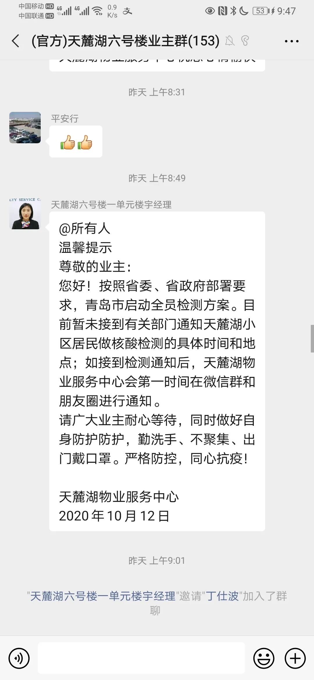 疫情当前,福瀛物业全力协助社区核酸检测,守护青岛,我们是认真的!